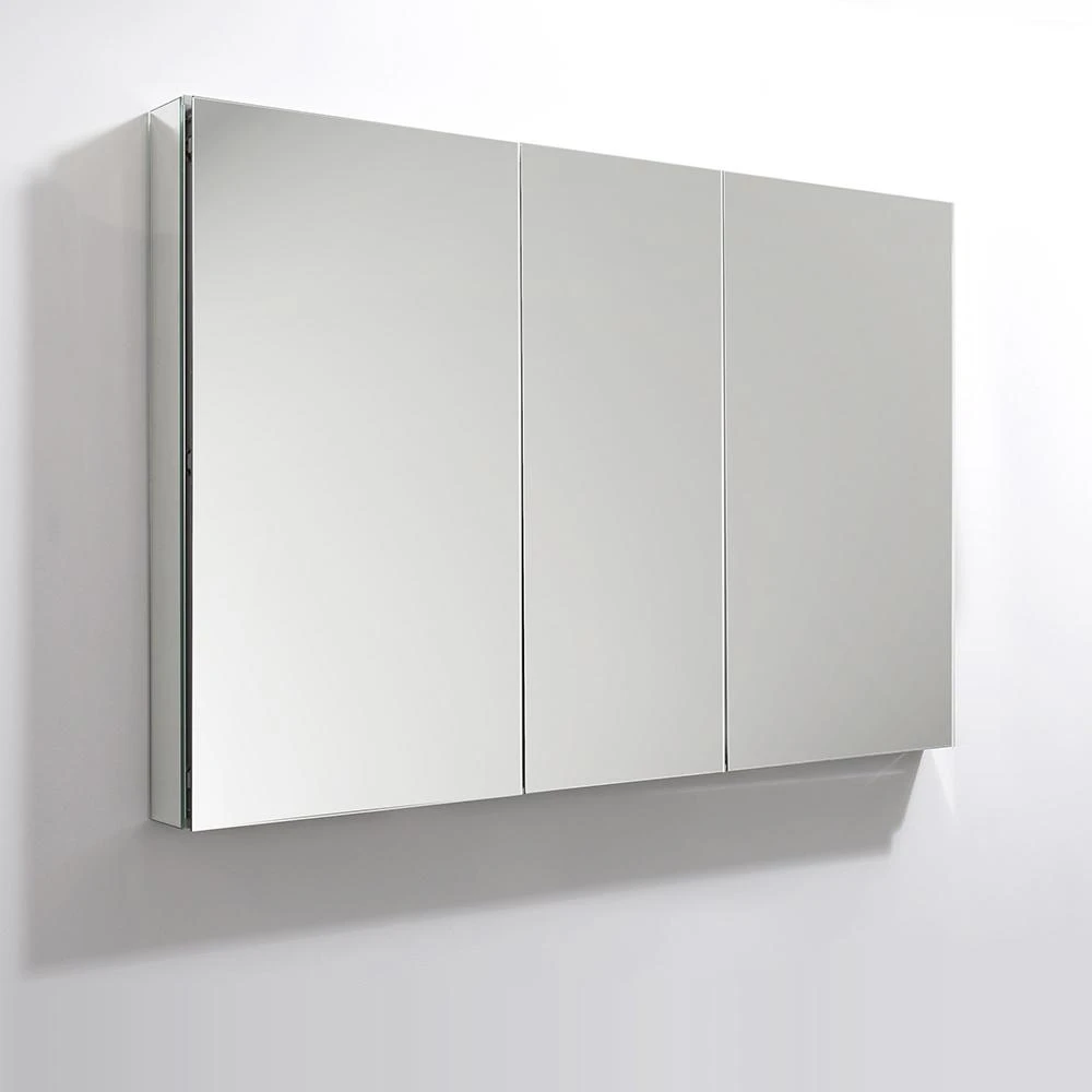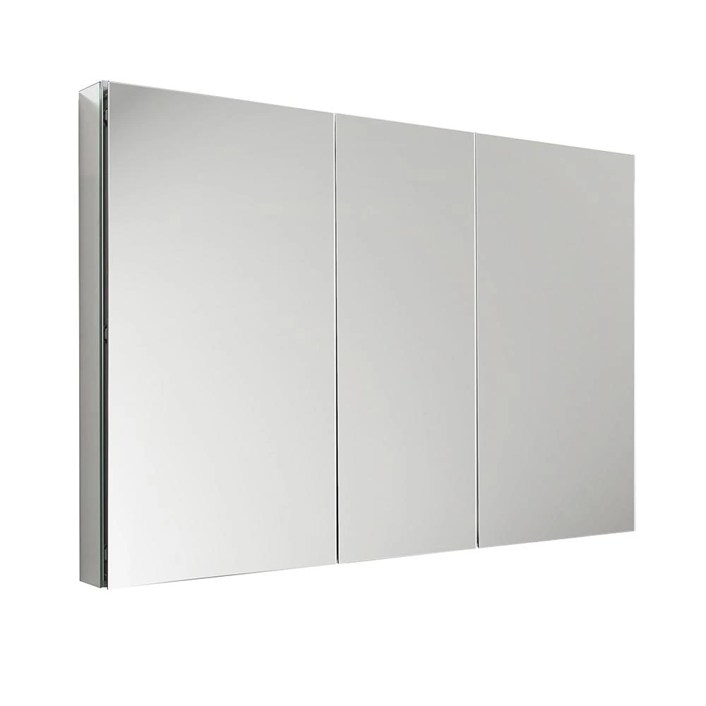 Every in. of this Fresca 50 Wide Bathroom Medicine Cabinet is mirrored inside and out to reflect light and give your bathroom a fresh and modern feel. Three doors feature mirrors on both sides, allowing you to keep an eye on your appearance while accessing daily necessities from within the cabinet. The interior back wall of the cabinet is also mirrored and has eight adjustable tempered glass shelves that can accommodate items of varying heights. An anodized aluminum frame creates a moisture and dust resistant interior.