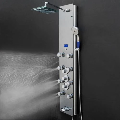 Shower panel system comes with built-in body massage jets and high efficiency spray handheld shower wand