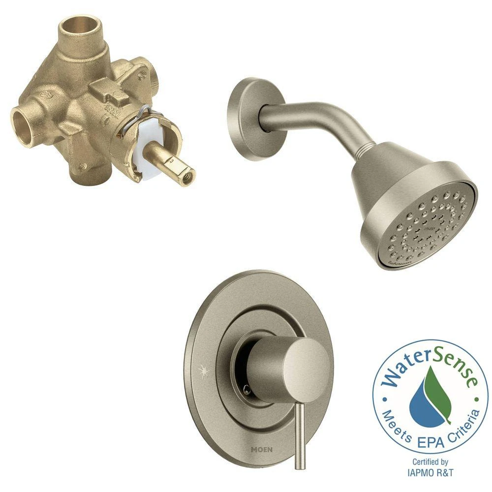 - PosiTemp pressure-balancing control valve keeps water temperature steady for consistently satisfying shower experiences