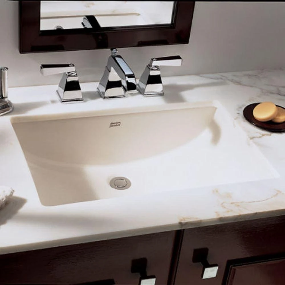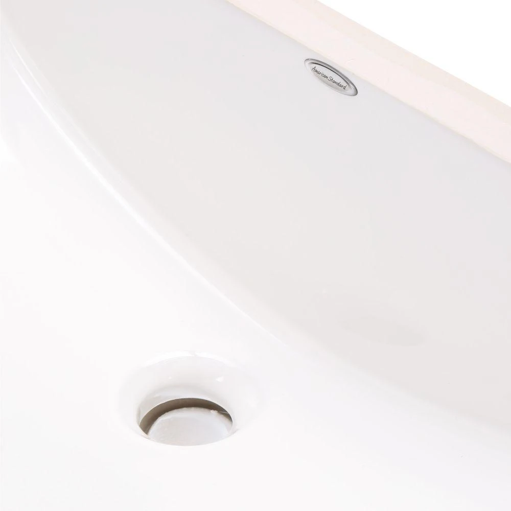 The American Standard Studio Undercounter Bathroom Sink in White is constructed from durable vitreous china. This rectangular sink features an unglazed rim and a curved interior bowl and incorporates bold lines, art deco styling and a geometric motif that are sure to create a stylish complement for your bathroom decor.
