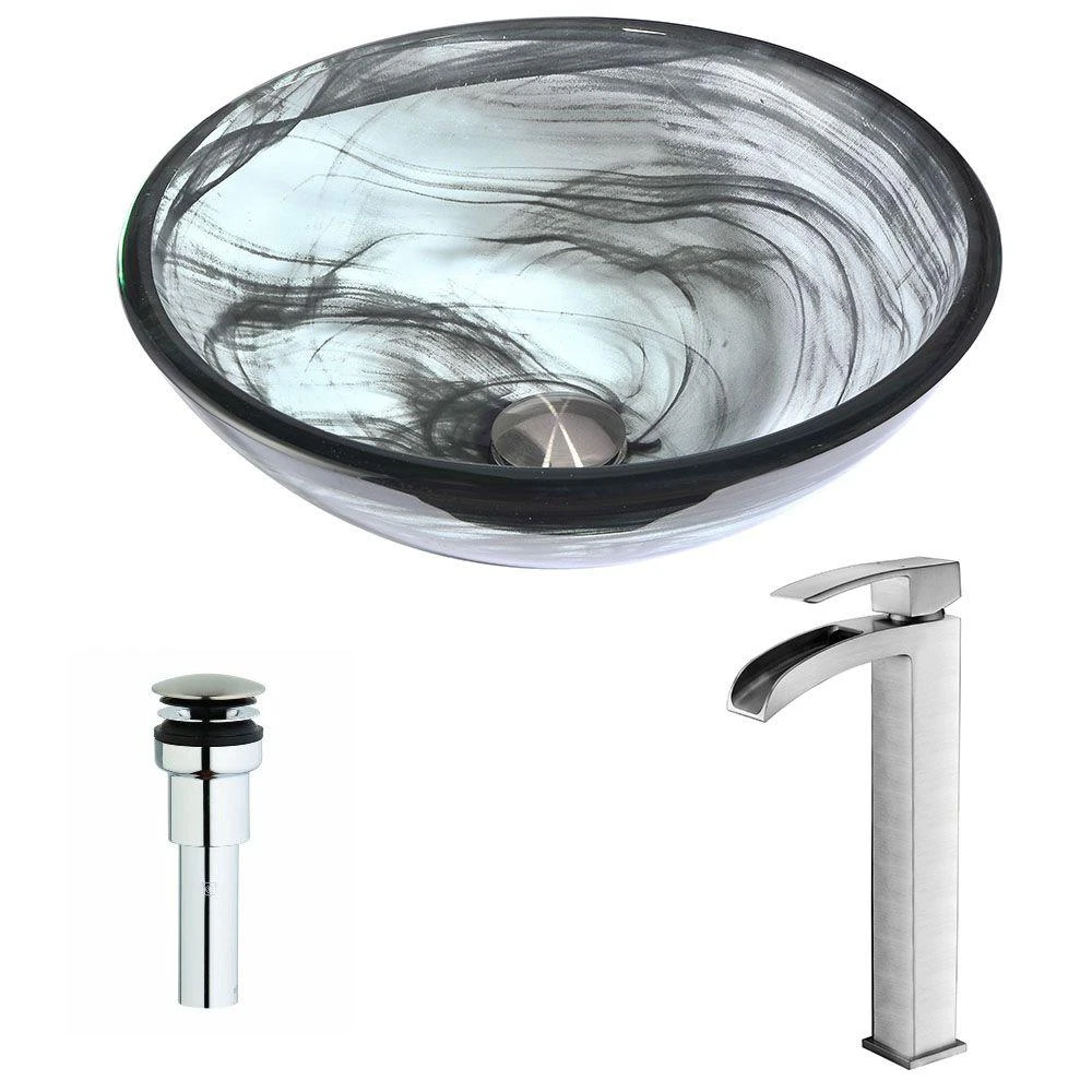 The ANZZI Mezzo Series sink is a traditionally crafted round vessel sink adorned in a Slumber Wisp Finish. Coupled with the ANZZI Key Vessel Sink Faucet, this combination provides pure elegance in any bathroom. Each ANZZI vessel sink and faucet is formed using RHINO ALLOY certified materials for strength and quality along with high tempered Deco-Glass. The result is a perfectly shaped dynamically captivating vessel and faucet centerpiece for any bathroom counter.