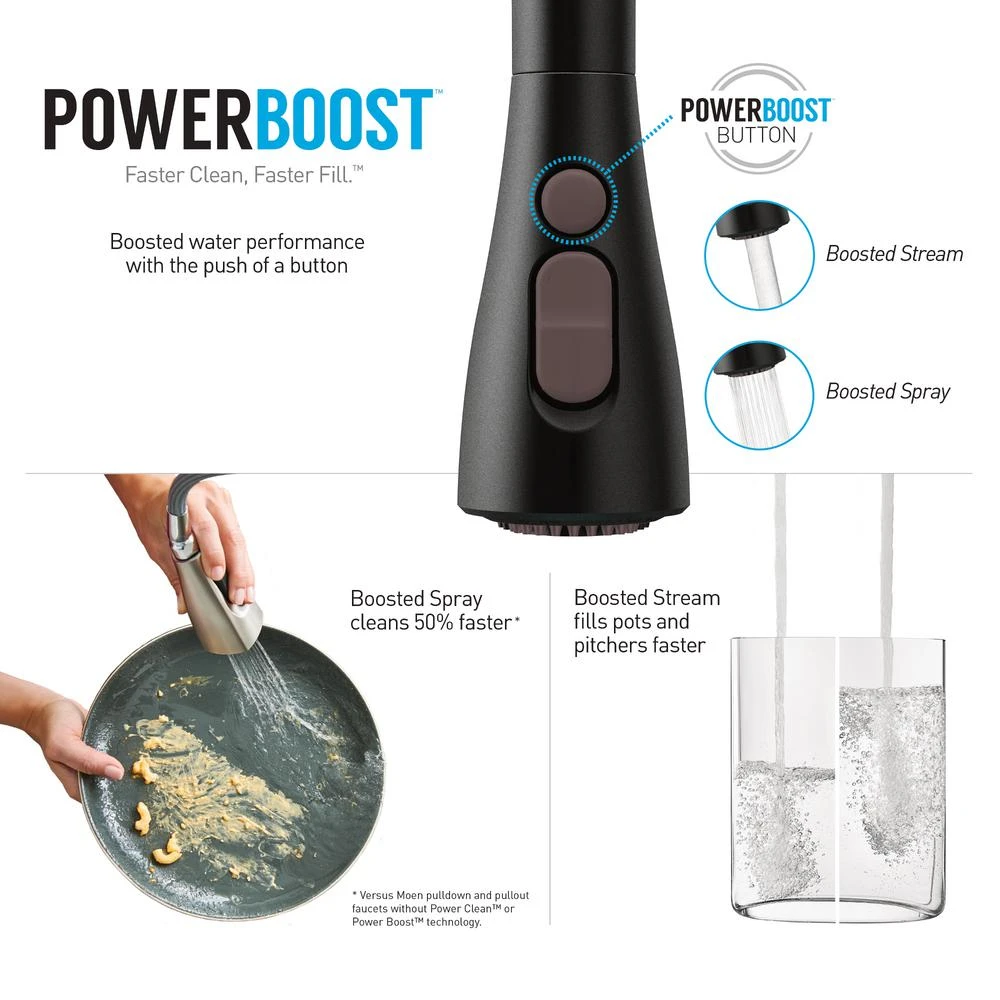 MOEN’s Arbor line of kitchen faucets delivers streamlined functionality and timeless transitional styling. With smooth, graceful curves extending into a high-arc spout, the Arbor Kitchen Faucet with Reflex features ultimate flexibility with its pull-down spout and comes complete with a soap/lotion dispenser for at-the-ready access. Arbor also utilizes Reflex technology, a comprehensive system of design enhancements engineered specifically for pull-out and pull-down movement by undocking easily, moving with you and retracting effortlessly when you’re done.