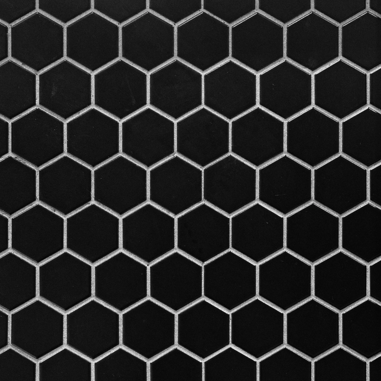 For an elevated look to your design, choose the Black Matte 2 in. Hexagon Porcelain Mosaic with a textured finish. Use this black tile to add new visual interest in any space like the bathroom, kitchen, living room, and more.