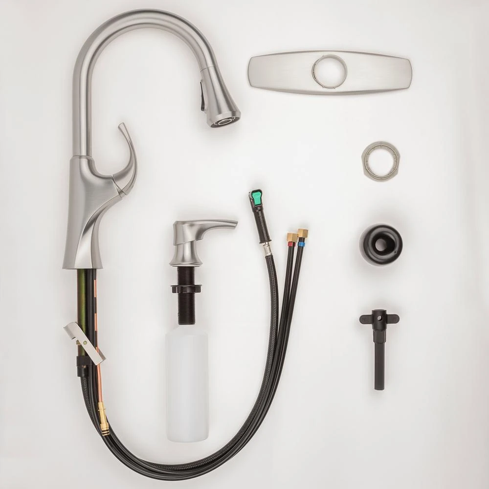 - Pull-Down spray head with toggle button to select spray or stream modes conveniently in the palm of your hand