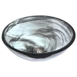 ANZZI Soave Series Deco-Glass Vessel Sink In Sapphire Wisp With Key Faucet In Brushed Nickel