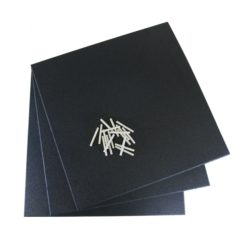 Rubber-Cal’s Eco-Sport Tiles are a recycled rubber floor tile that are 1 inch thick and available in 4 aesthetically pleasing colors, Coal, Blue, Green, and Terra Cotta. With their thick 1-inch gauge, these tiles are designed to withstand the most abrasive conditions thus serving as a premium flooring and equipment protection product. These recycled rubber tiles are excellent for either indoor or outdoor applications due the high contents of EPDM (i.e. a UV/Ozone resistant elastomer) found in the recycled tire rubber. Recycled rubber is a superior material when trying to reduce noise, contain vibration, and absorb shock from workout equipment. These products are specifically manufactured for durability and are designed for either residential or commercial applications that are exposed to heavy foot traffic. Moreover, the space age polyurethane based binder used during manufacturing process enhances the anti-fatigue qualities found naturally in rubber. Each mat is fabricated from thousands of rubber granules and offers superior underfoot comfort and support along with the resilience to cushion the shock of running, exercising, walking and standing. One of the biggest concerns commonly associated with rubber flooring is the installation, therefore this product offers an interlocking mechanism (plastic connector pin), and the tile has two holes on each of the four sides resulting in five connector pins per tile. The connector pins made of hard plastic with ferruled edges, which holds them in place inside the tile once they have been inserted. When coming to a wall, you can simply trim the tiles with a sharp utility knife and a straight edge guide to easily cut the product to your specific needs, making for a very simple and easy DIY installation that can be done by anyone.